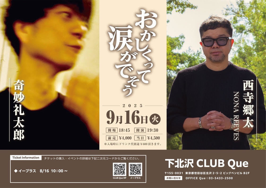 ⻄寺郷太が下北沢CLUB Que主催のイベントに出演決定‼️